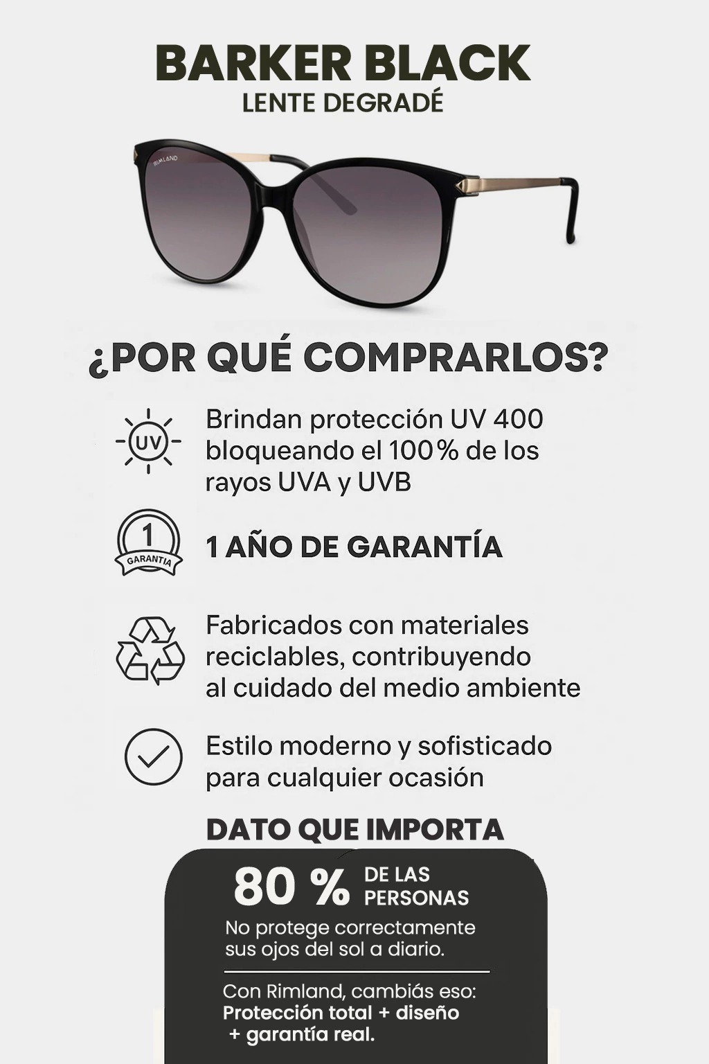 Nuestras gafas combinan diseño con protección UV100% de alta calidad (contra rayos UVA, UBV Y UV400) para que puedas disfrutar de una visión más nítida y cuidar tus ojos de los efectos negativos del deslumbramiento.