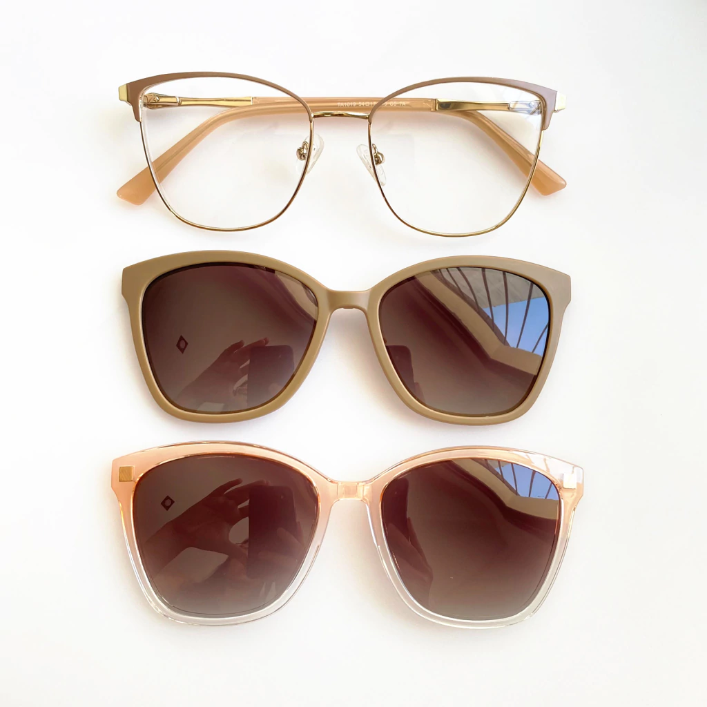 El sistema Clip On permite agregar al armazón de base un clip polarizado que a través de un sistema de imán lo transforman en un anteojo de sol.
