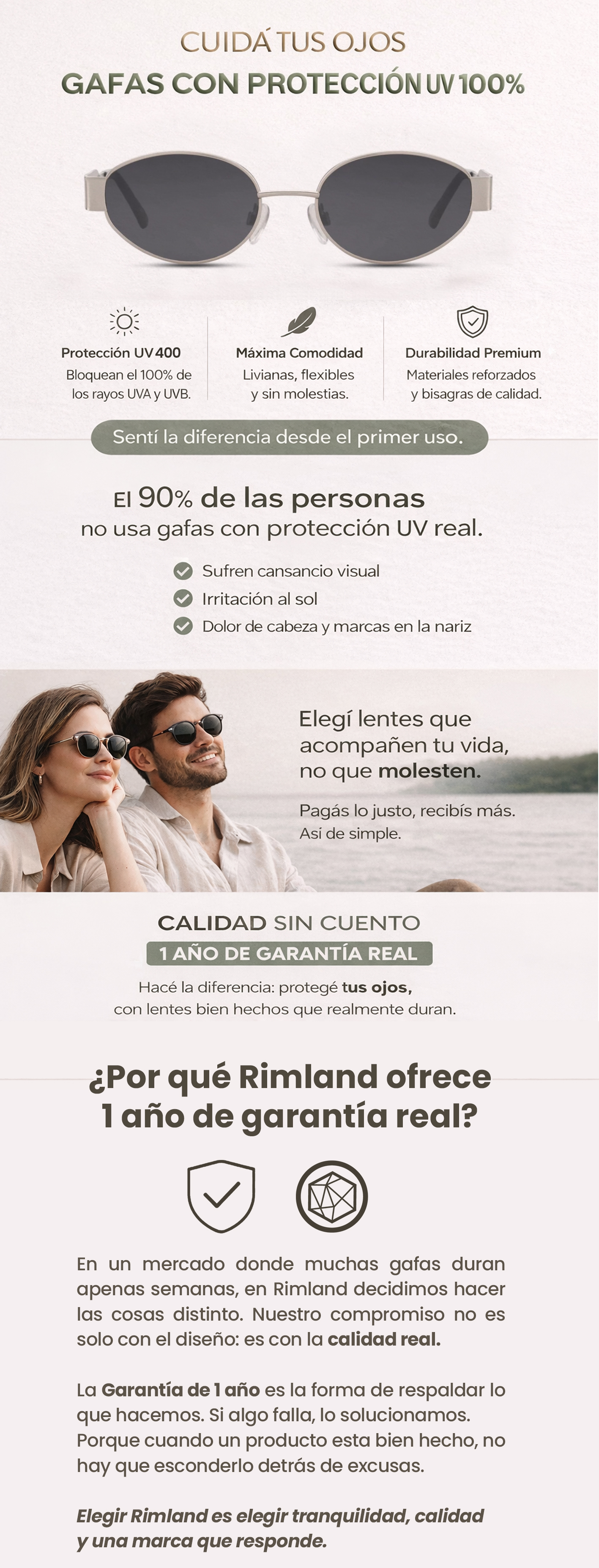 Fabricadas en Metal son resistentes a los golpes, no aprietan, no pesan y son cómodas para uso diario. Su lente TAC antirayaduras garantiza una visión nítida y mayor durabilidad.