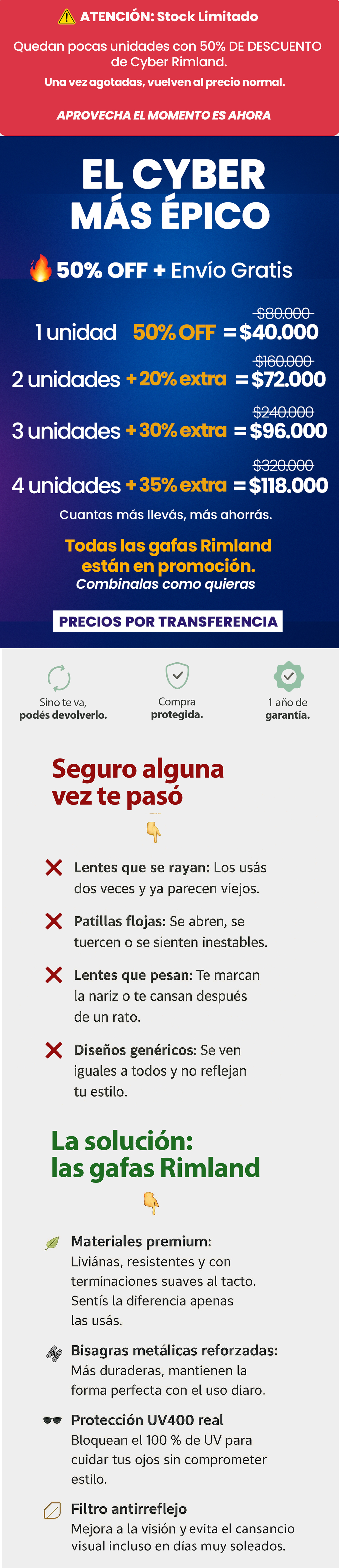 Con 1 año de garantía real, nuestras gafas están diseñadas para acompañarte todos los días, combinando estilo, comodidad y resistencia.