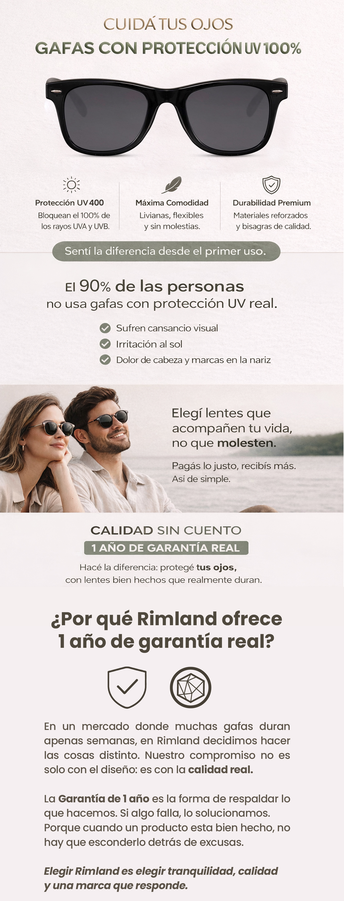 Estuche rígido de cuero - Paño de microfibra - Packaging exclusivo Rimland - Stickers - Certificado de garantía.
