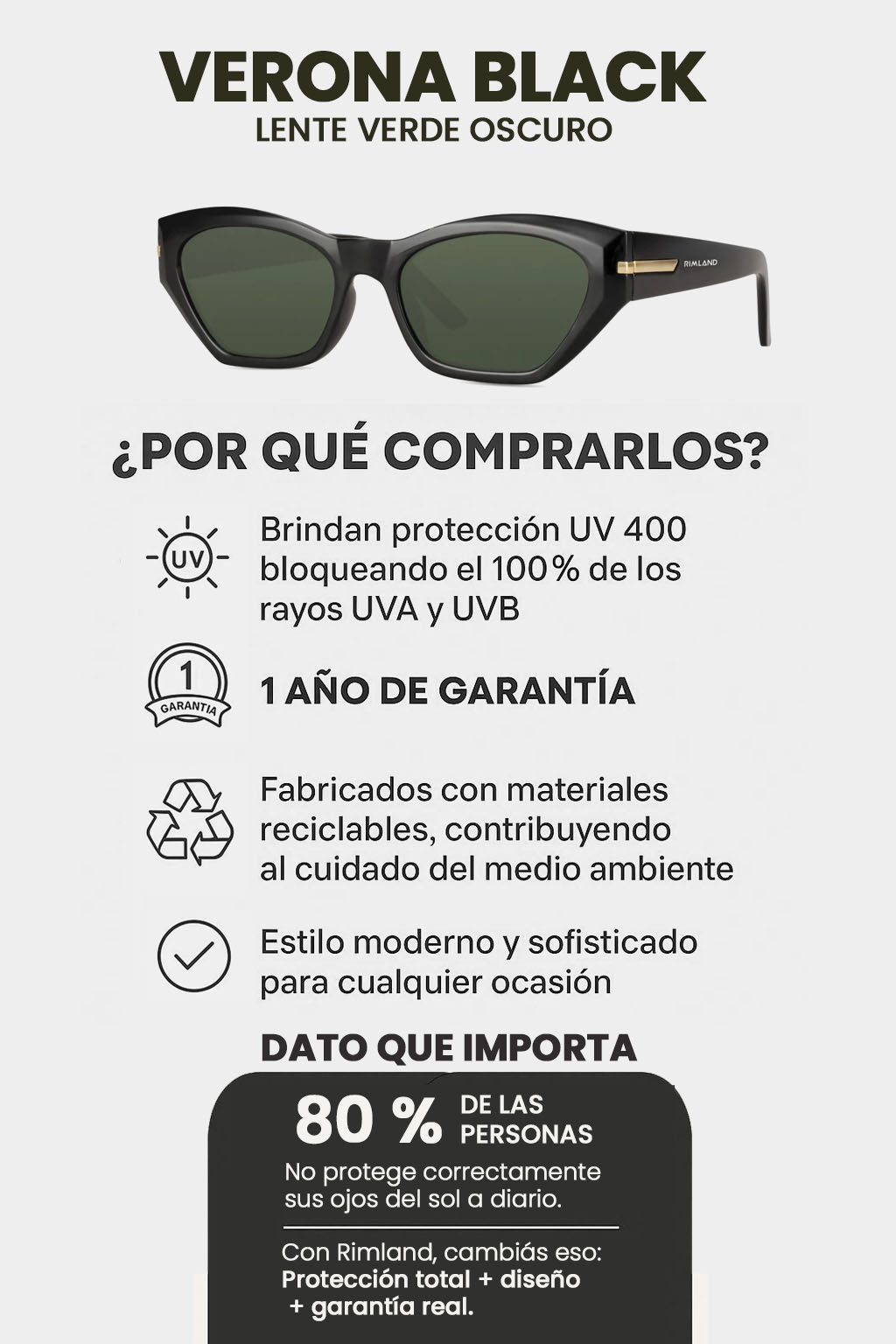 Nuestras gafas combinan diseño con protección UV100% de alta calidad (contra rayos UVA, UBV Y UV400) para que puedas disfrutar de una visión más nítida y cuidar tus ojos de los efectos negativos del deslumbramiento.